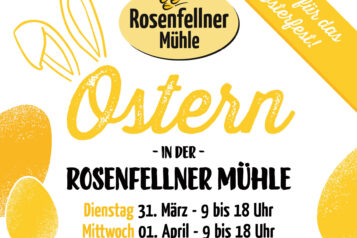 Wir feiern Ostern – und laden dich ganz herzlich dazu ein! Am Dienstag, 31. März, und Mittwoch, 1. April hoppelt der Osterhase durch die Mühle und versteckt für jedes Kind…