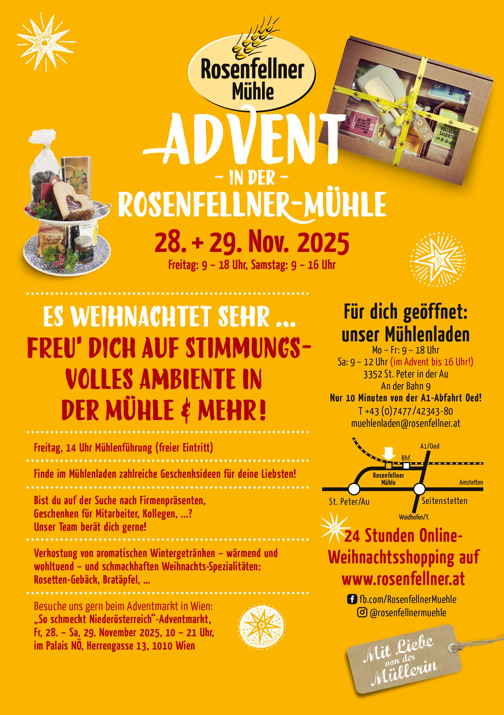 - Weihnachtseinkauf im weihnachtlichen Ambiente im Mühlenladen zu den Öffnungszeiten.