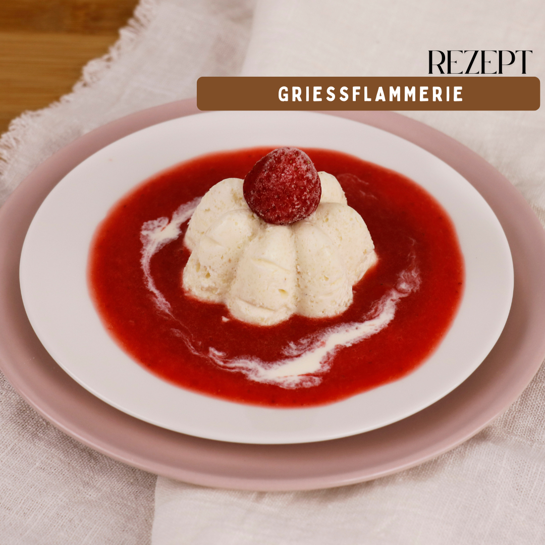 Ein klassisches Dessert kehrt zurück auf die Teller: Grießflammerie. Die klassische Süßspeise schmeckt fluffig, – nicht zuletzt wegen der besten Zutaten, ihrer einfachen Zubereitung und ihres herrlichen Geschmacks. Im Mittelpunkt steht dabei unser hochwertiger Rosenfellner Bio Weizengrieß, der maßgeblich die Qualität des Desserts bestimmt. Durch seine Vermahlung entsteht eine besonders cremige und zugleich luftige Konsistenz. Diese Eigenschaften machen unsere Grießflammerie zu einer leichten, aber dennoch sättigenden Nachspeise, die sowohl pur als auch mit frischen Früchten oder Fruchtsaucen serviert werden kann.