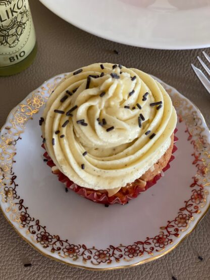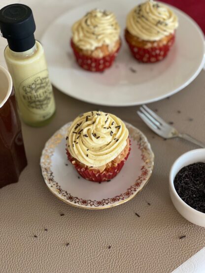 Die Muffins etwa 20 Min. vor dem Servieren aus dem Kühlschrank nehmen, dann schmeckt die Eierlikörcreme wieder weich und cremig.